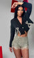Pantaloni scurți eleganți, realizați din material acoperit integral cu paiete silver, perfecți pentru ținute statement de seară. Croiala este scurtă și ușor mulată, evidențiind silueta într-un mod feminin și rafinat.