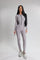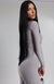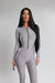 Salopetă lungă mulată într-o nuanță elegantă de gri deschis, cu design modern și efect vizual sculptant.