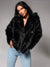 Adaugă un plus de eleganță și rafinament ținutelor tale de sezon cu această jachetă de blană neagra gri, perfectă pentru zilele reci. Designul său luxos oferă un aspect sofisticat, păstrând în același timp confortul și căldura de care ai nevoie.