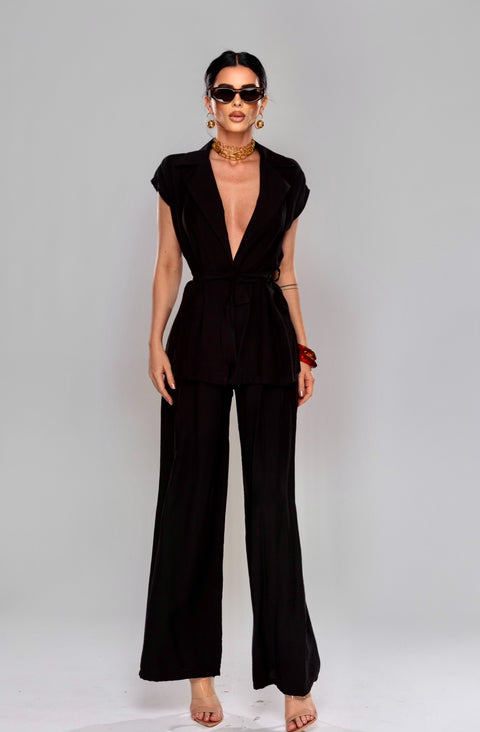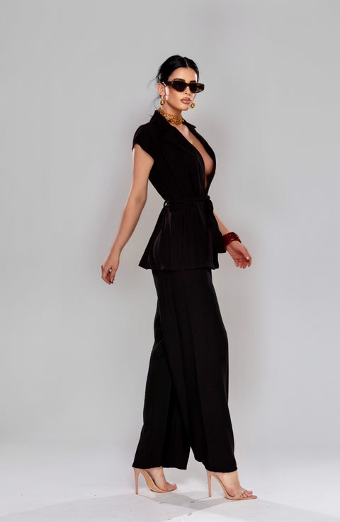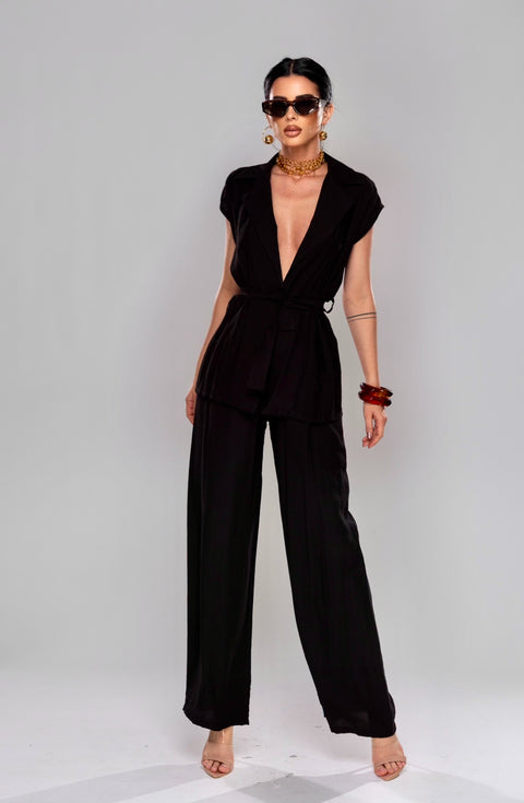 Compleu de vara Black Muse Eleganță naturală într-o nuanță caldă, earthy. Black Muse este setul lejer care îmbină perfect confortul cu rafinamentul. Cu pantaloni largi și un top cu guler...